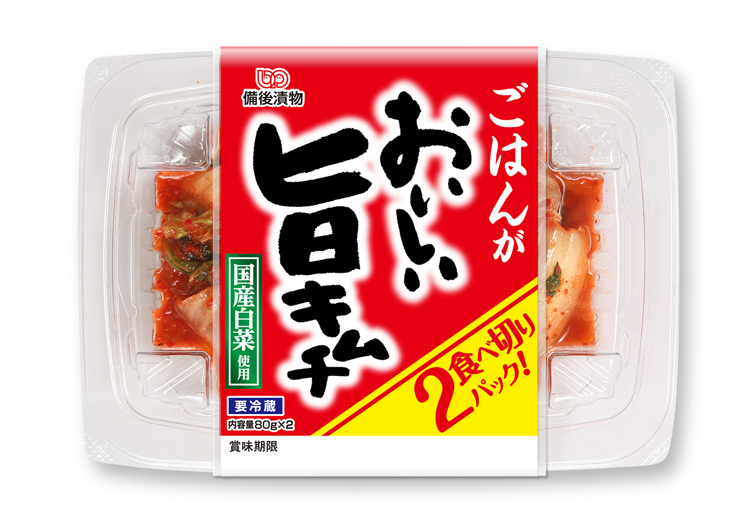| 白菜(国産)、にら(国産)、漬け原材料【果糖ぶどう糖液糖、おろし にんにく、醤油、食塩、唐辛子、ごま、しょうが】 /調味料(アミノ 酸)、酸味料、香料、増粘多糖類、ビタミンB1、(一部に小麦・ごま・ 大豆を含む) |